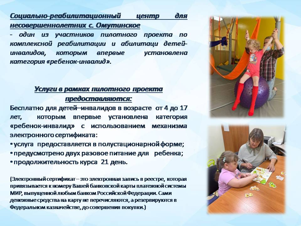 и абилитации ребенку-инвалиду с использованием электронного сертификата в АУ СОН ТО «Социально-реабилитационном центре для несовершеннолетних с. Омутинское».