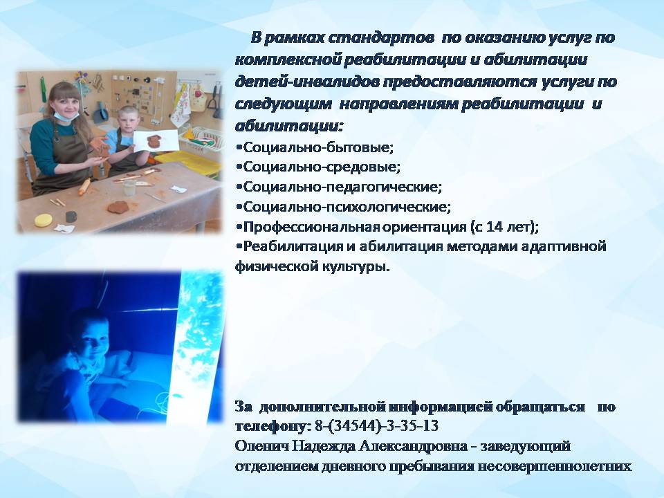 Информация для родителей (законных представителей) детей-инвалидов о предоставлении услуг по комплексной реабилитации