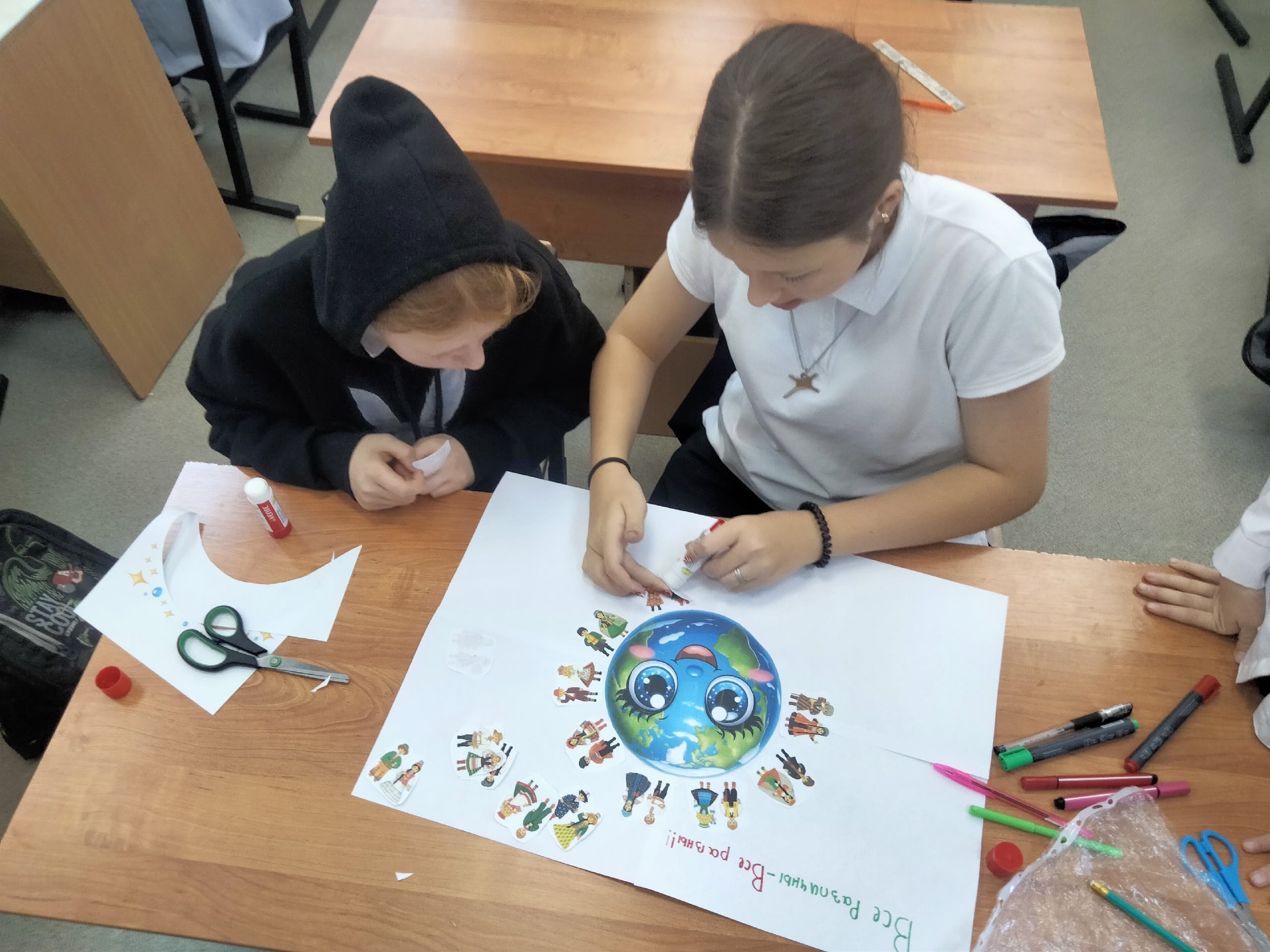 Специалисты рассказали ребятам, что 16 ноября жители многих стран мира отмечают Международный день толерантности или День терпимости. Школьники высказали свое мнение о важности данной акции в жизни современного человека, сделали коллаж, символизирующий толерантность: земной шар, на котором люди разных национальностей держатся за руки.