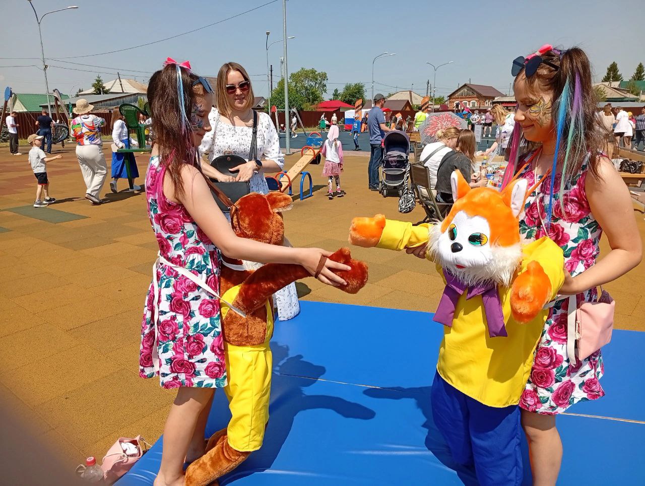 На протяжении всего праздника гости смогли сфотографироваться с ростовыми куклами: Медведем "Умкой", Гусем "Обнимусем" и Зайкой, которые радовали своим появлением.
