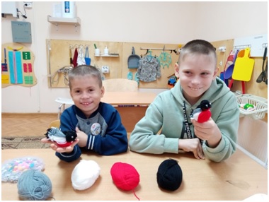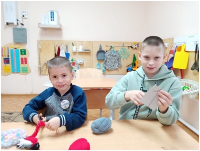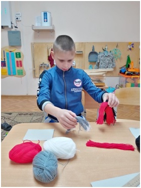 4.12.2025 года в АУ СОН ТО «СРЦН с. Омутинское», в отделении дневного пребывания несовершеннолетних для детей - инвалидов, проходящих реабилитацию в условиях полустационара прошло занятие по развитию творческих способностей «Птичка из ниток».