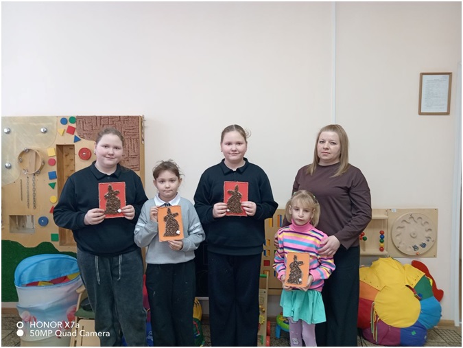 26 января 2026 года в отделении дневного пребывания несовершеннолетних с ограниченными возможностями здоровья прошел творческий мастер-класс «Зайка из зернового кофе».