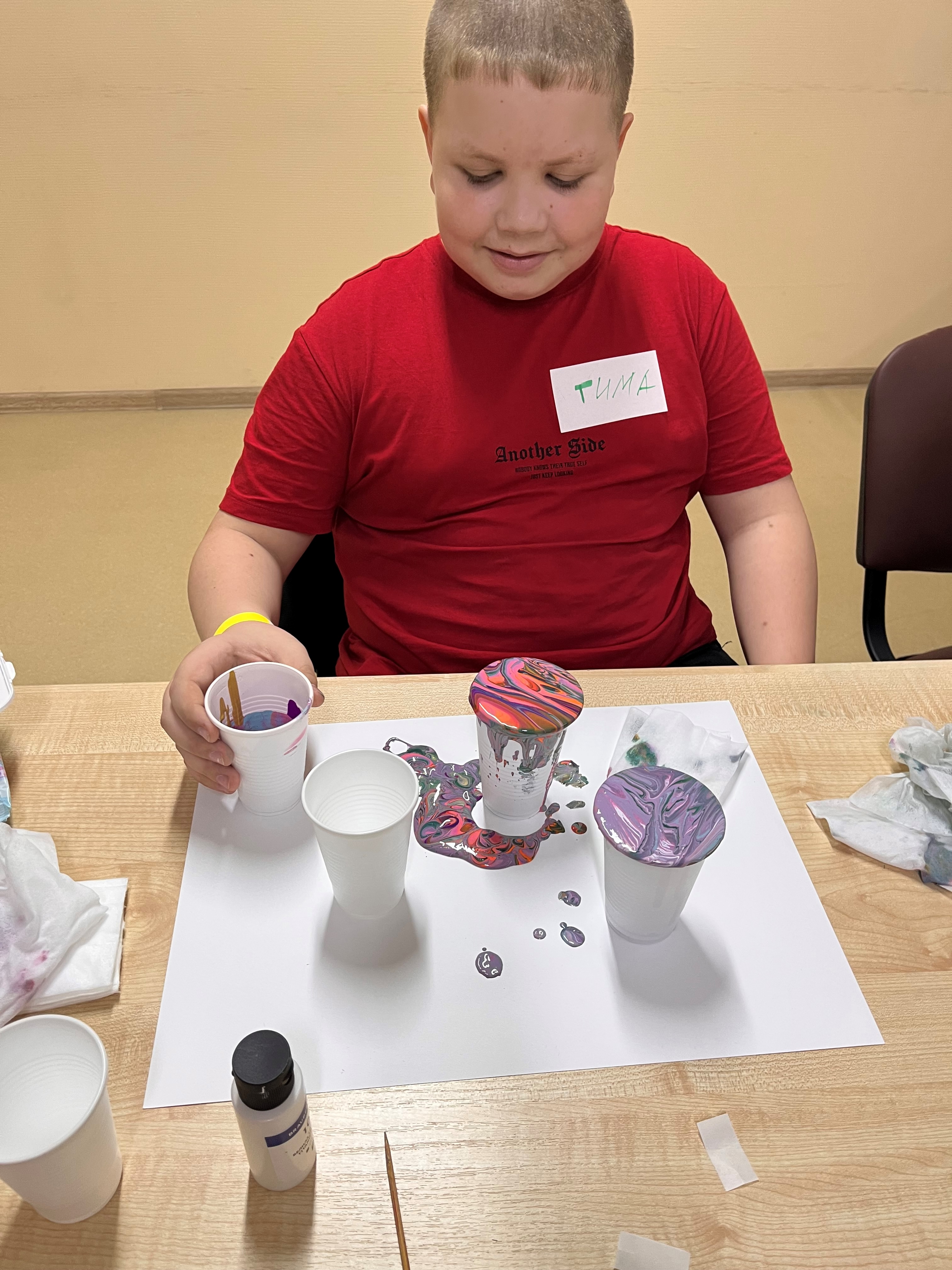 Арт-терапевтическое занятие «Цвет моего настроения» было направлено на выражение эмоциональных переживаний через творческий процесс. В начале занятия ребята выбрали цвета, которые соответствовали их настроению, и погрузились в мир творчества. Дети использовали нетрадиционную технику рисования «флюид-арт», что позволило им снять напряжение и почувствовать свободу самовыражения. В своих работах они использовали мягкие тона и холодные цвета, создавая рисунки, отражающие тихие моменты и меланхоличные переживания, работали с яркими красками, создавая динамичные и насыщенные композиции, передающие радость и энергию. В «Школе эмоций» ребята учились лучше понимать себя и окружающий мир, а также выражать свои мысли и чувства через искусство. Творческое занятие прошло необыкновенно легко, в атмосфере эмоционального подъема и доверия.